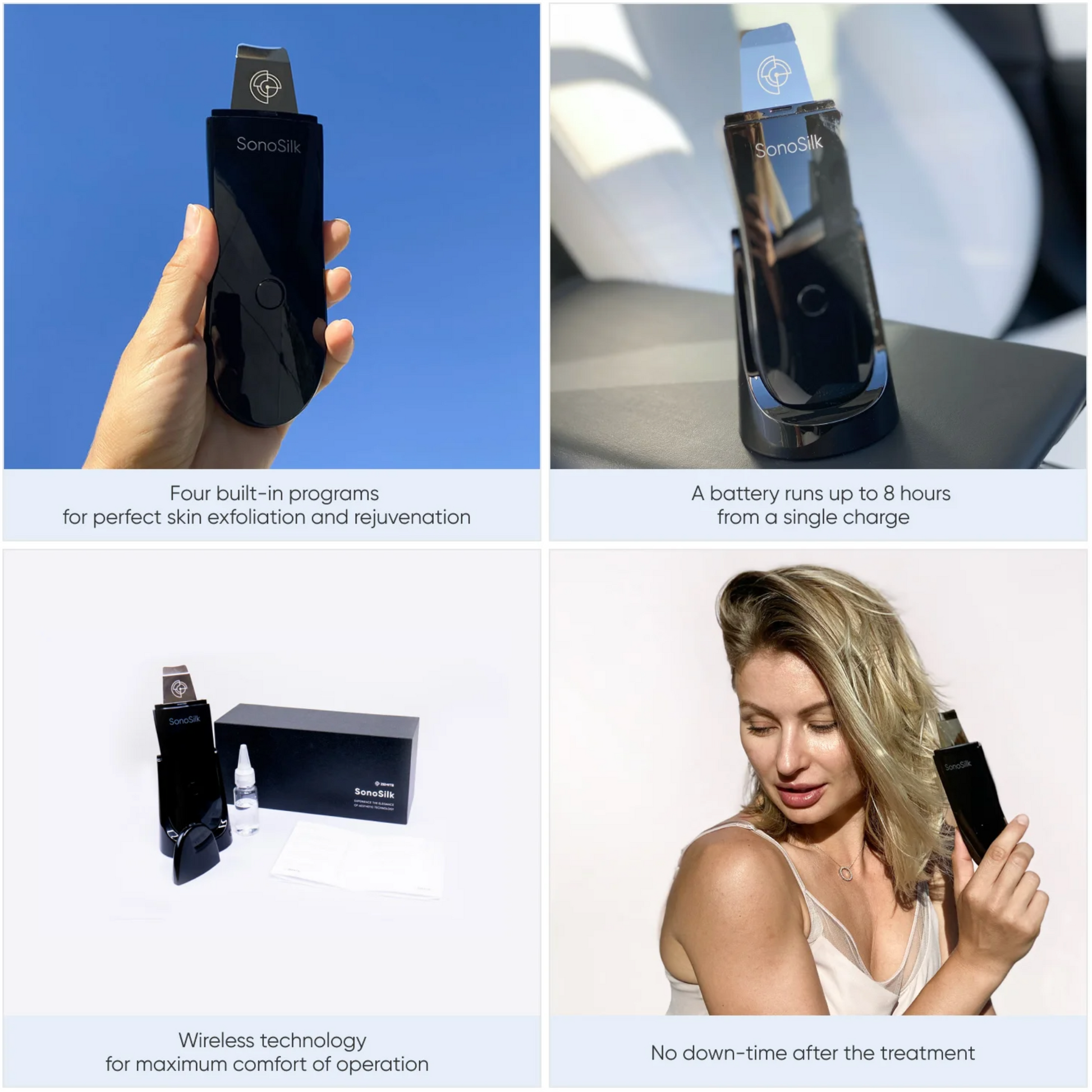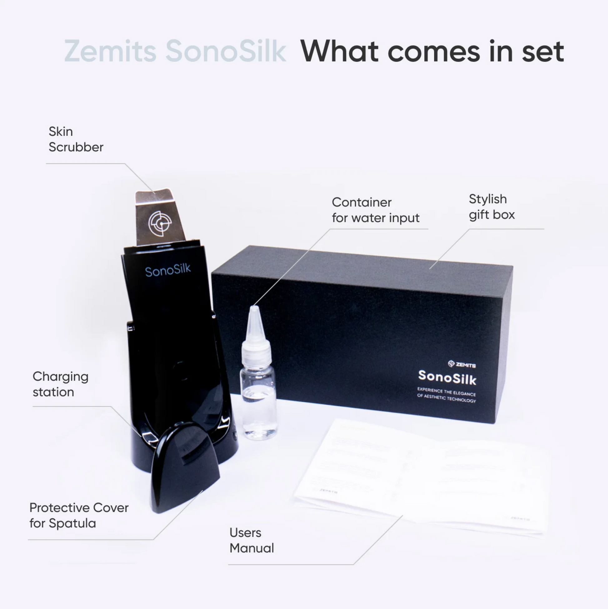 - SonoSilk est recommandé par les professionnels et est largement utilisé par les esthéticiennes. SonoSilk offre une technologie multi-solutions avancées pour cibler différents problèmes. L'épurateur de peau Zemits a une conception révolutionnaire avec un port intégré pour les produits à base d'eau. Cela permet à l'opérateur de garder la peau humide pendant toute la durée de l'étape de gommage sans avoir à s'arrêter pour la réhumidifier : par son effet vapeur intégré.